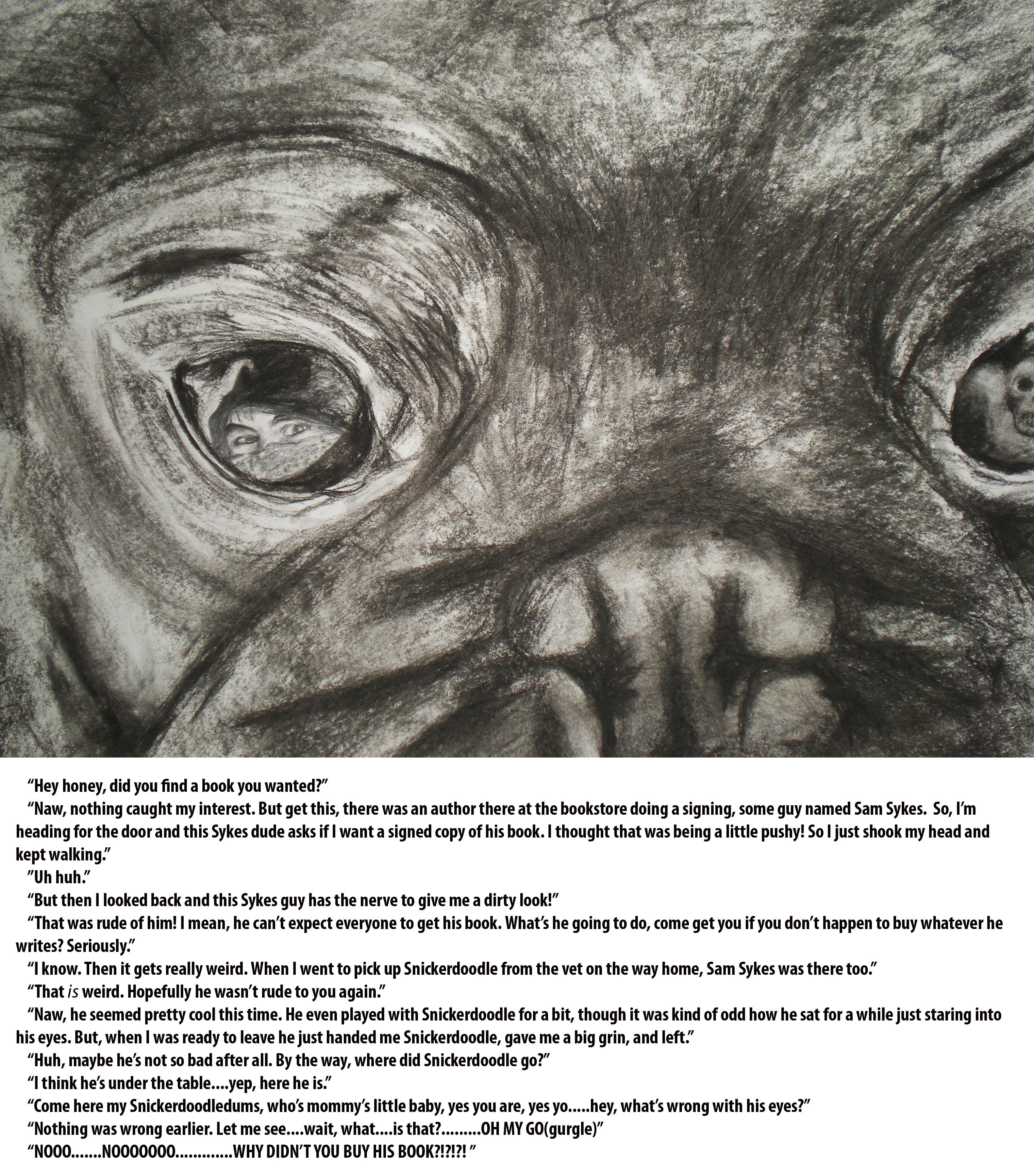 Look at the use of lines. The contours, the colors. Note how the eyes really reflect my power over pugs and my relentless thirst for compliments. Yes, this is an excellent piece, to be better complimented by…