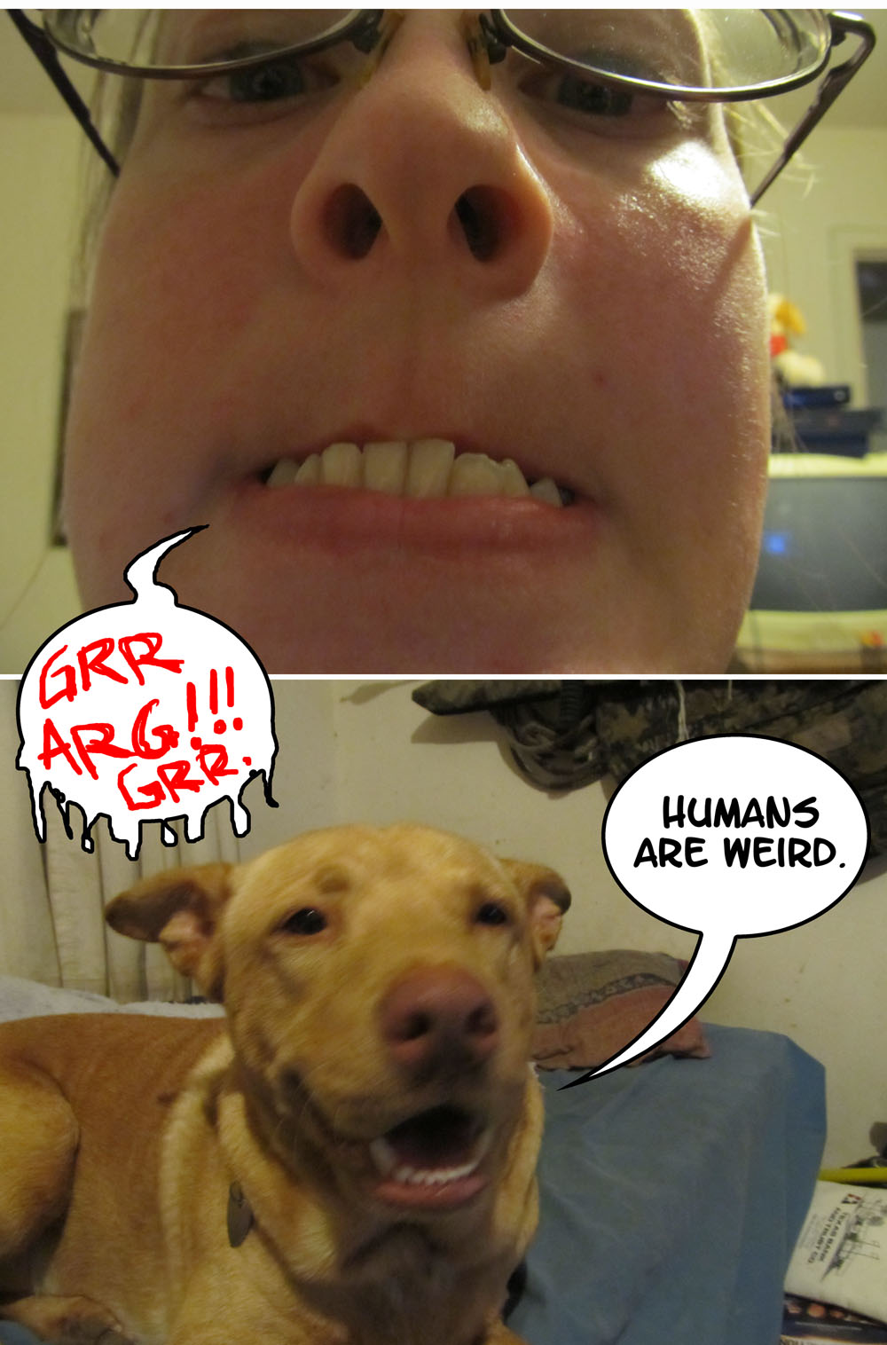 A pretty good one! And here is Neila with a growly Gariath and dog!